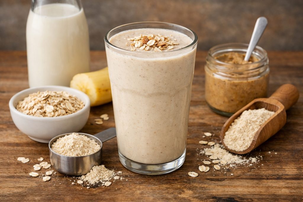 - odżywka białkowa roślinna typu blend (groch + ryż) – 30 g (1 miarka)