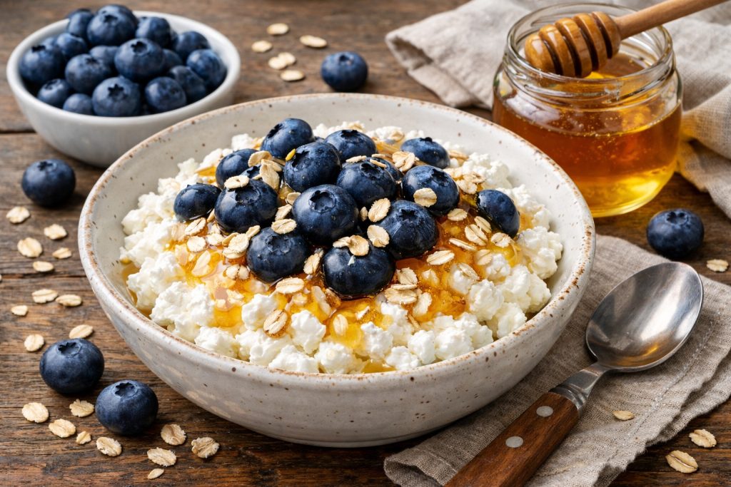 3. Twarożek śniadaniowy z owocami (B:27 g | kcal: 420)