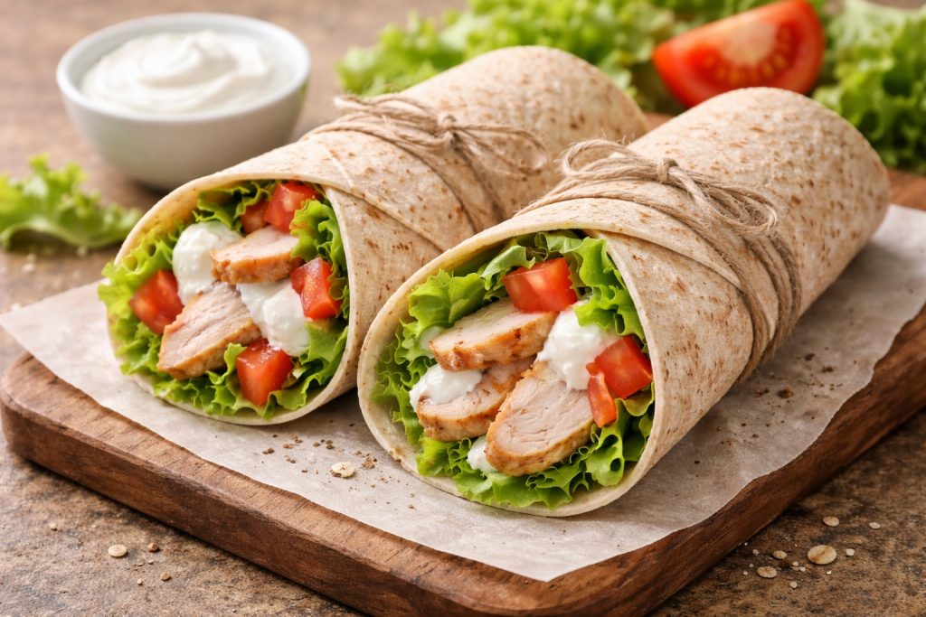 2. Wrap z kurczakiem i jogurtem (B: 30 g | kcal: ~480)